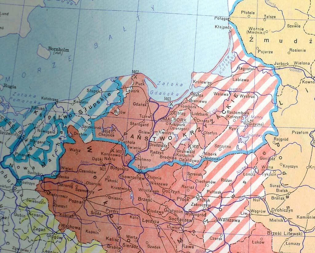 Im Februar 1454 vertrieben die Danziger die Kreuzritter aus der Stadt. Das führte dazu, dass der ganze Kreuzritter-Staat stürzte. Mit dem Thorner- Friedensvertrag von 1466 endete der dreizehnjährige Krieg zwischen den Ständen aus Polen und Preußen mit den Kreuzrittern. An Stelle des Kreuzritterstaates wurde hier eine neue Provinz gegründet: das Königliche Preußen (Prusy Królewskie), das beinhaltete: Danzig, Pomerellen, Kulm, das Ermland, Marienburg und Elbing. Das Königliche Preußen gehörte ab jetzt zu Polen. Der Name „Kreuzritterstaat“ wurde geändert in: das Fürsten-Preußen (Prusy Zakonne). Der „neue Staat“ behielt die restlichen Gebiete des Kreuzritterstaates. Der Hochmeister musste die Oberhoheit des polnischen Königs anerkennen und Treueid sowie Heerfolge leisten. Der Deutsche Orden sollte auch in Zukunft polnische Mitglieder haben.